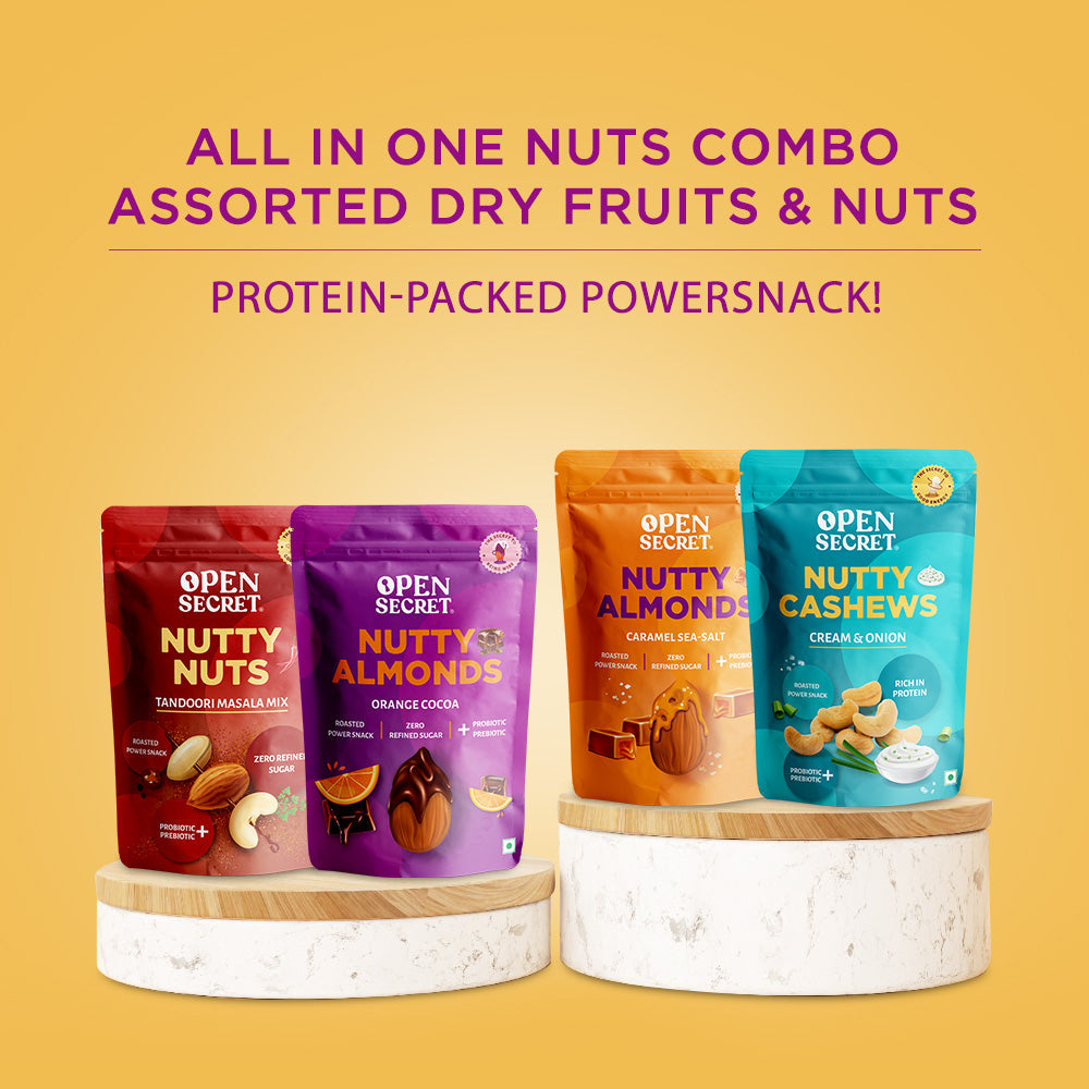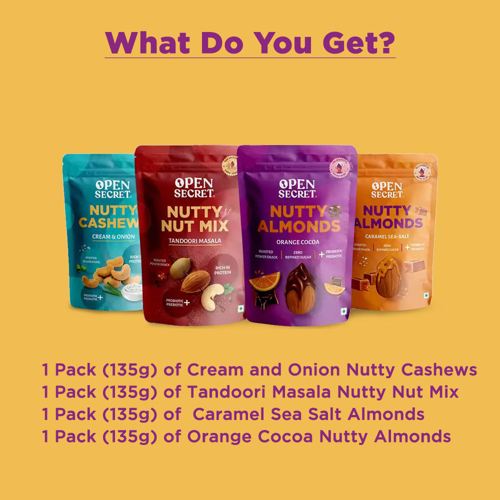 Snacks Gift Hamper Combo Pack | Caramel Sea Salt & Orange Coco Almond Badam, Cream Onion Cashew, Tandoori Nuts | Immunity Boosting Nuts