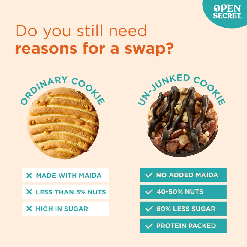 - Choco-Almond Cookies: Almonds, Peanuts, Rice Crispies.