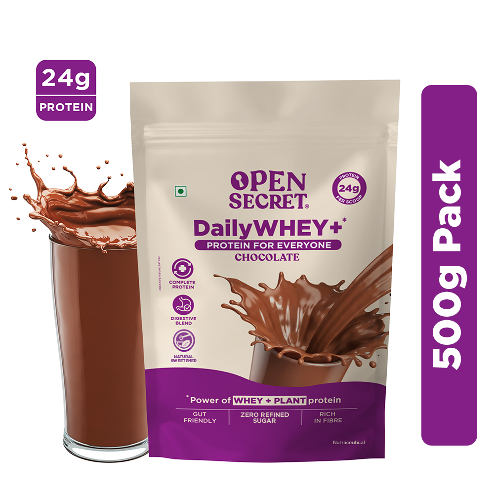 DailyWHEY+ | Blend of Whey + Plant Protein | 24g Protein Per Scoop | Chocolate Flavor | 500 g