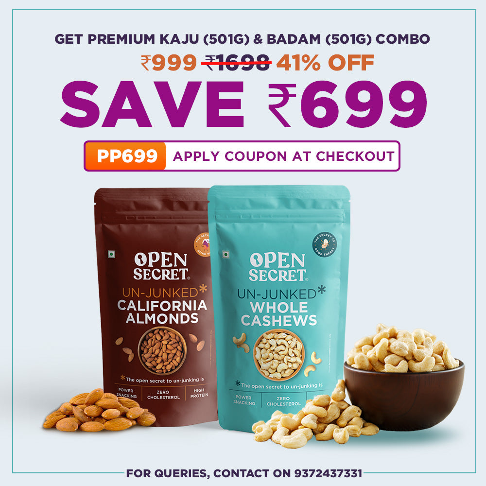100% Natural Kaju & Badam | High in Fiber | Immunity Boosting Unjunked Nuts| Gluten Free & Plant Based Protein