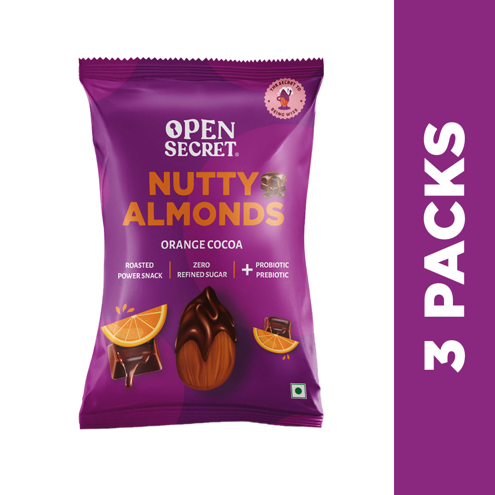 - 3 packs (60g each) of delicious Orange Cocoa Nutty Almonds