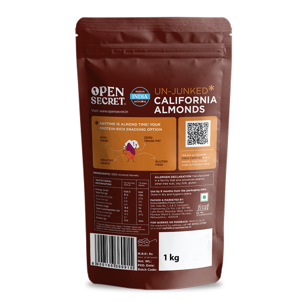 - Almonds: 100% Whole Almond Kernels