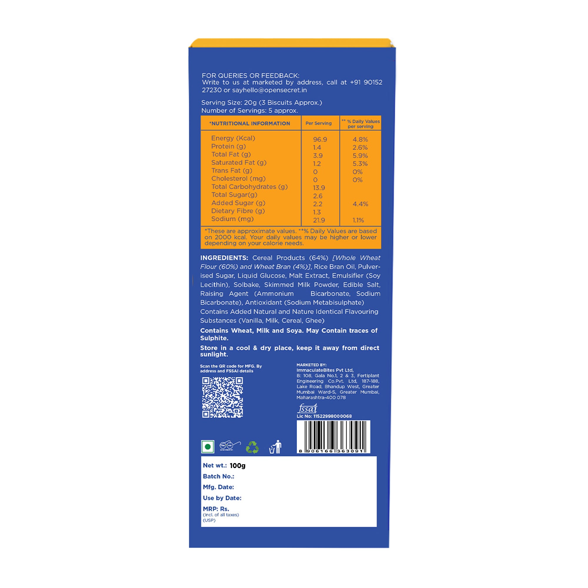 Open Secret Un-Junked Digestive Biscuits bring you the classic digestive taste with a wholesome, satisfying bite. Lightly sweet, perfectly crisp, and ideal with chai or coffee — they’re made for everyday tea-time cravings and mid-meal hunger.