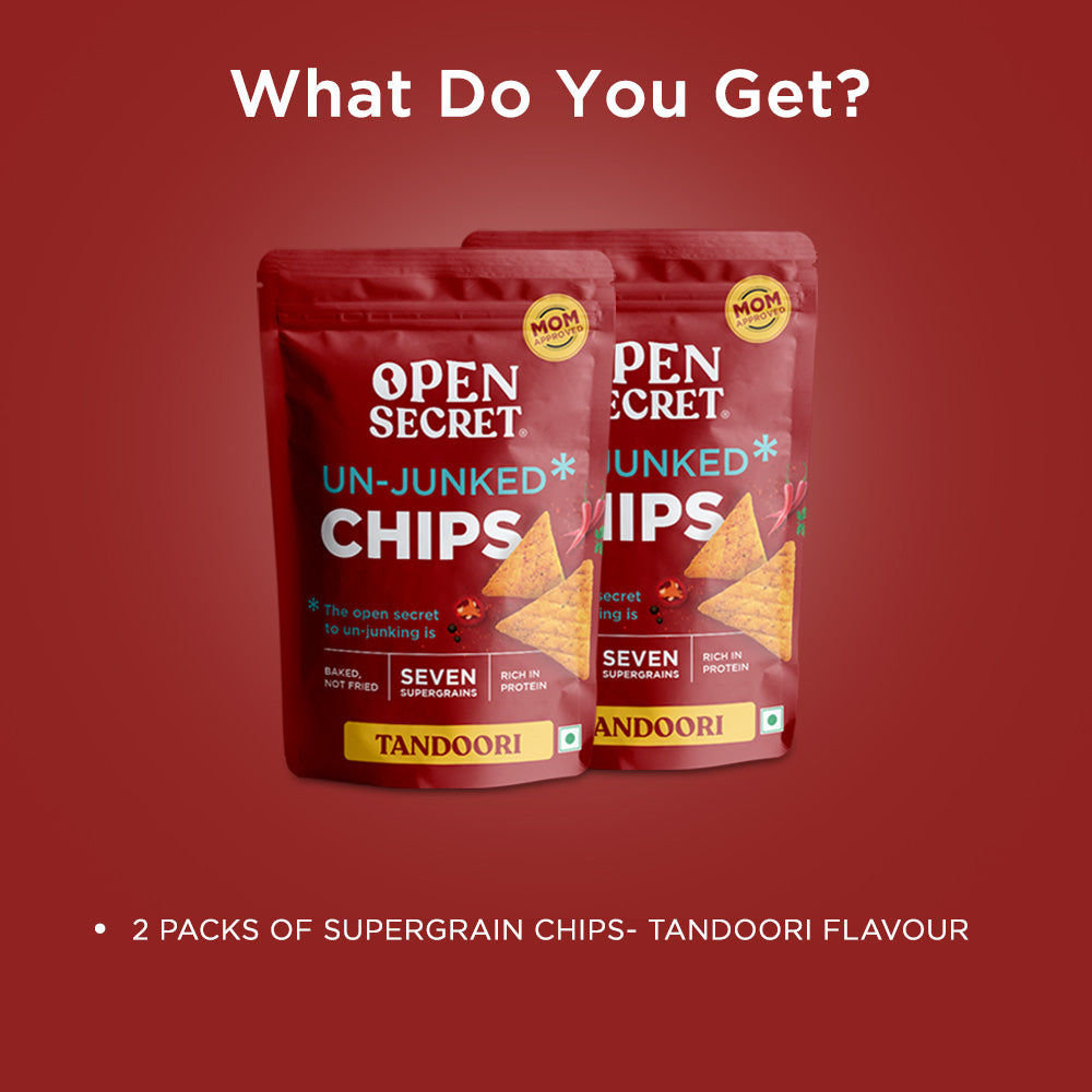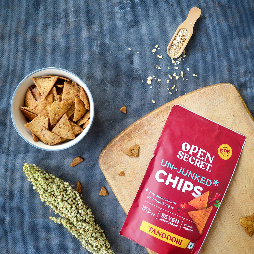 - Open Secret Chips are made with 7 Supergrains: Oats, Ragi, Jowar, Bajra, Corn, Rice & Urad.