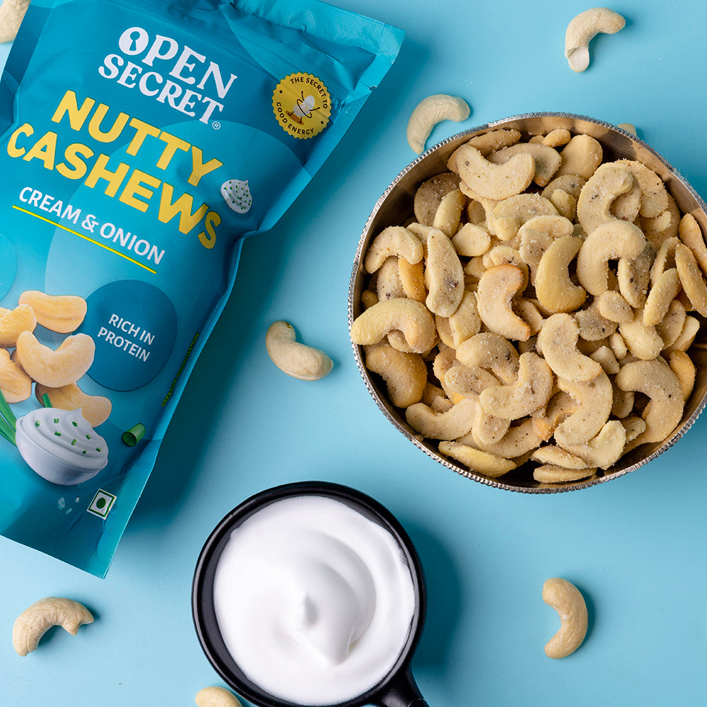 - 1 Pack (135g) of Cream and Onion Nutty Cashews