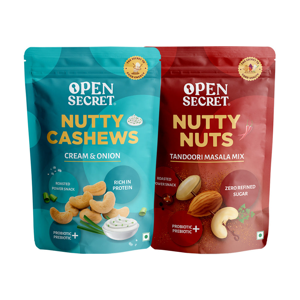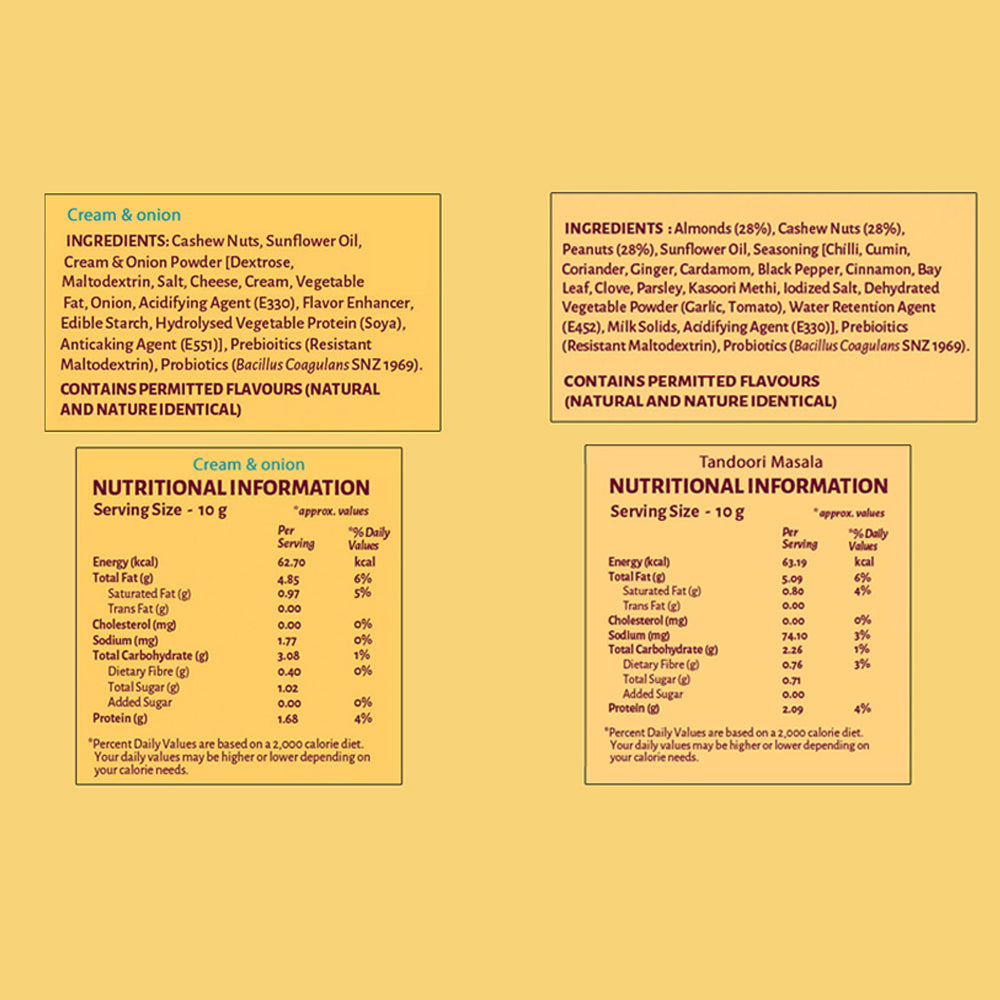 Zero Refined Sugar | Flavoured Roasted Nuts | Immunity Boosting Nuts | Tandoori Mixed nuts | Cream & Onion Cashews (Kaju)